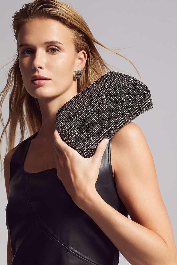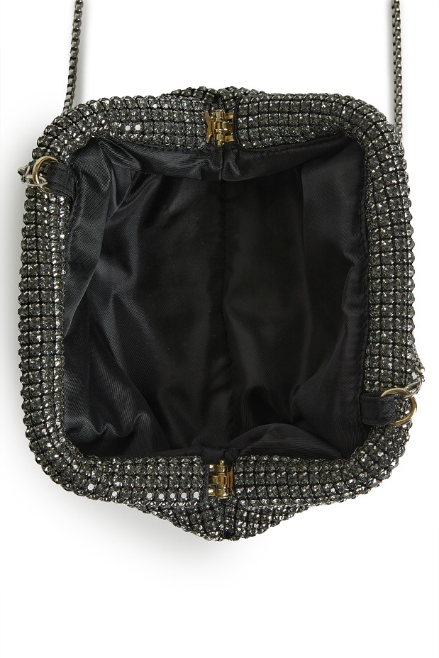 - Τσάντα με στρας,κλείσιμο clutch, με αποσπώμενη αλυσίδα
